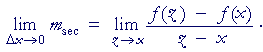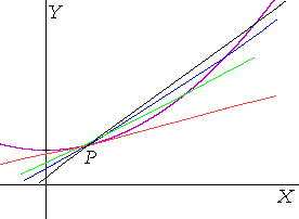 Let Δx approach 0 -- that is, let z approach x. Then the slope of the tangent line at P is