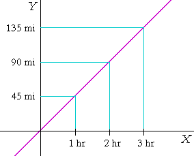 straight line graph that relates them indicates constant speed. 45 miles per hour, say -- at every moment of time.