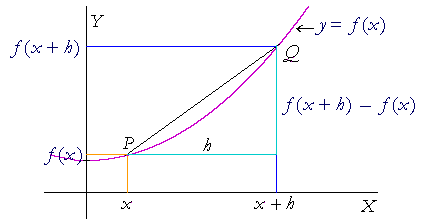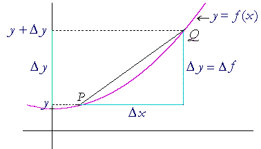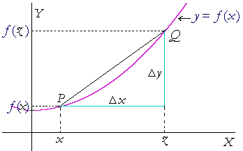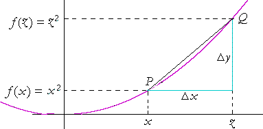 Let y = f(x). Let x be a specific point in the domain of f, and let z be another point. Then the coordinates of P are (x, f (x)), and the coordinates of Q are (z , f (z)). (Topic 4 of Precalculus.)