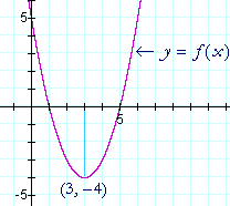 By finding the value of x where the derivative is 0, then, we have discovered that the vertex of the parabola is at (3, −4).