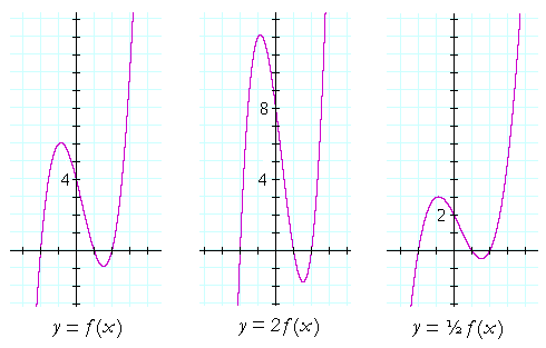 If we multiply f(x) by a number greater than 1 -- as in the graph in the center -- then every y-value is stretched.