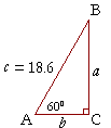 Problem 5.   Solve the right triangle ABC if angle A is 60°, and the hypotenuse is 18.6 in.