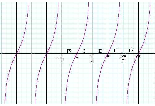 Thus the graph of Quadrants IV and I is repeated in Quadrants II and III, and periodically along the entire x-axis.