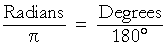 Degrees into radians 360° = 2π. 180° = π. When we write, 180° = π, we mean that it equals π radians, which is approximately 3.14 radians. However, we normally omit the word radians. For, as we will see in the next Topic, Arc length, the radian measure can be any number. Example 1. Convert 120° into radians. Solution. We can go from what we know to what we don't know. Since