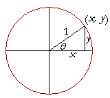 The value of sin θ is the y-coördinate of the unit radius! The value of cos θ is the x-coördinate!