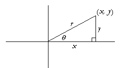 radius r will terminate at a point (x, y). Those coördinates define a right triangle. The original definitions (Topic 4) of the six trigonometric functions follow.