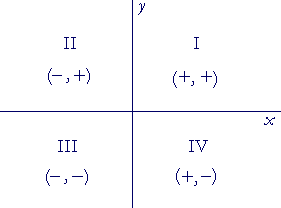 c) In which quadrants will the algebraic sign of tan θ (y/x) be positive?