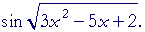 y is "inside" the function y². Problem 1. Calculate the derivative of (x² −3x + 5)9. To see the answer, pass your mouse over the colored area. 9(x² −3x + 5)8(2x − 3) Problem 2. Calculate the derivative of (x4 − 3x² + 4)2/3. 2/3(x4 − 3x² + 4)−1/3(4x3 − 6x) Problem 3. Calculate the derivative of sin5x. 5 sin4x cos x Problem 4. Calculate the derivative of sin x5. The inside function is x5. The outside function is sin x. (This is the sine of x5.) Therefore, the derivative is cos x5· 5x4.
