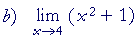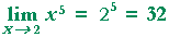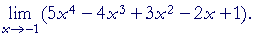 The limits of the numerator and denominator follow from Theorems 1, 2, and 4. The limit of the fraction follows from Theorem 3.
