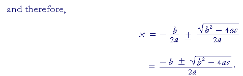 Here is the quadratic formula -- which is proved by completing the square!  In other words, the quadratic formula completes the square for us.