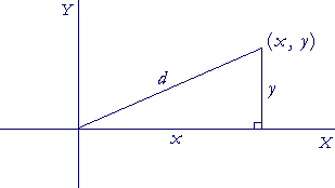 According to meaning of the rectangular coordinates (x, y), and the Pythagorean theorem, d ² = x² + y². Therefore,