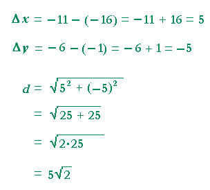Problem 4. Calculate the distance between (−11, −6) and (−16, −1)