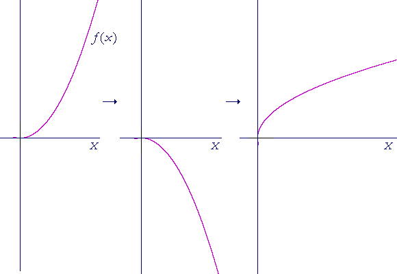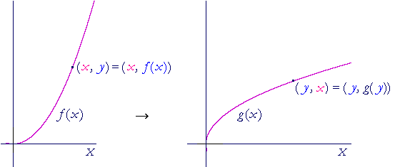 In other words, when each point (x, y) on f(x) is transformed into (y, x), then a graph of a functions g(x) results.  And we claim that the graph of