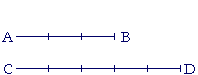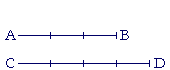 AB, CD are straight lines, and AB is three fifths of CD. Express that relationship as a proportion.