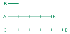 Problem 7. E, AB, and CD are straight lines, and E is their common measure. It measures AB four times and CD five times.