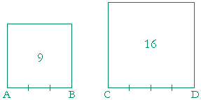 c) What ratio has the square drawn on AB to the square drawn on CD?