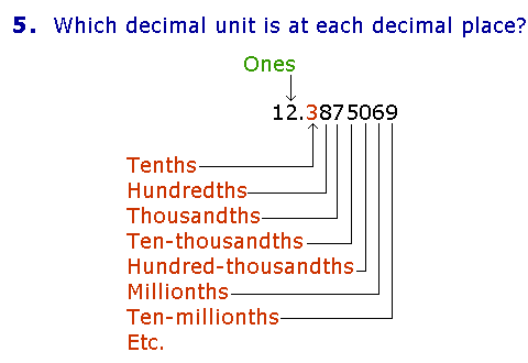 They are the units less than 1 -- they are the parts of 1 -- named as tenths, hundredths, thousandths, ten-thousandths, and so on.
