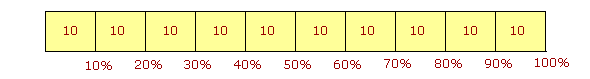 What percent of the squares have been shaded? Answer. 32% -- 32 for each 100. When the percent is less than or equal to 100%, then we can say "out of" 100. 32% is 32 out of 100. (But to say that 200% is 200 out of 100 makes no sense. 200% is 200 for each 100, which is to say, twice as much.) Example 2. 100 people were surveyed, and 65 responded Yes. What percent responded Yes? Answer. 65% -- 65 out of 100. Example 3. In a class of 30 students, all 30 came to school by bus. What percent came to school by bus? Answer. 100%. 100% means all. (30 for each 30 is equivalent to 100 for each 100.) |