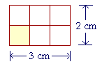 What do we call the small shaded square? Since each side is 1 cm, we call it "1 square centimeter." And we can see that the entire figure is made up 2 × 3 or 6 of them! In other words, the area of that rectangle -- the space enclosed by the boundary -- is 6 square centimeters: 6 cm².