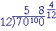 "12 goes into 70 five (5) times (60) with 10 left over."  (Lesson 11.)