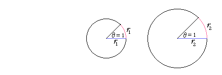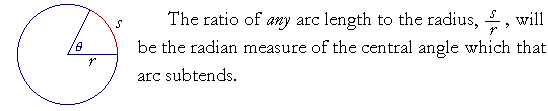 circle. The radian measure is a real number that indicates the ratio of a curved line to a straight, of an arc to the radius. For, the ratio of s to r does determine a unique central angle θ.