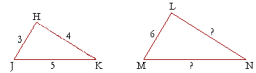 Example 10. Let triangles HJK, LMN be similar, and let HJ = 2 in, HK = 4 in, and JK = 5 in. How long are LN and MN?
