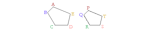 Thus, to say that figures ABCDE, PQRST are similar, is to say that the angle at A is equal to the angle at P, the angle at B is equal to the angle at Q, etc.; and, proportionally, as AB is to BC, so PQ is to QR.