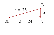 Example 3.  Given two sides of a right triangle.   Solve the right triangle ABC given that side c = 25 cm and side b = 24 cm.