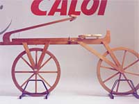 Esta "máquina andante", consistía en una especie de carrito de dos ruedas, colocadas una detrás de otra. La persona se mantenía sentada sobre una pequeña montura, colocada en el centro de un pequeño marco de madera. Para moverse, empujaba alternadamente con el pie izquierdo y el derecho hacia adelante, en forma parecida al movimiento de una patineta. Con este impulso, el vehículo adquiría una velocidad casi idéntica a la de un coche. Sus brazos descansaban sobre apoyabrazos de hierro, y con las manos sostenía una vara de madera, unida a la rueda delantera, que giraba en la dirección hacia la cual quería ir el conductor.