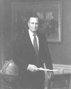 George Bush trajo a la Casa Blanca la dedicación hacia los valores americanos tradicionales y la determinación para dirigirlos a hacer de los Estados Unidos "una nación más buena y más apacible" En su discurso inaugural, prometió en "un momento ricos en promesas" utilizar la fuerza americana como una "fuerza para el bien". Viniendo de una familia con una tradición de servicio público, George Herbert Walker Bush sintío la responsabilidad de hacer su contribución en ambas épocas, de guerra y en paz. Nació en Milton, Massachusetts, el 12 de junio de 1924, se convirtió en un líder estudiantil de la Academia Phillips en Andover. En su 18vo cumpleaños, se enlistó en las fuerzas armadas. El piloto más joven de la marina cuando él recibió sus alas, voló 58 misiones de combate durante la Segunda Guerra Mundial. En una misión sobre el Pacífico como piloto de un bombardero de torpedos, el fuego antiaéreo japonés lo derribó y fue rescatado en el agua por un submarino de los Estados Unidos. Fué condecorado con la Cruz Distinguida de Vuelo por su valentía en acción. Bush despues dio vuelta a sus energías hacia terminar su educación y criar una familia. En enero de 1945 se casó con Barbara Pierce . Tuvieron seis hijos-- George, Robin (quién murió cuando niño), John (conocido como Jeb), Neil, Marvin, y Dorothy. En la Universidad de Yale, sobresalió en ambos, deportes y estudios; fué capitán del equipo del béisbol y miembro de la fraternidad Phi Beta Kappa . Después de la graduación, Bush emprendió una carrera en la industria del petróleo de Texas del oeste. Como su padre, Prescott Bush, quién fue elegido un senador de Connecticut para 1952, George se interesó en el servicio público y la política. Sirvió dos términos como Representante en el Congreso de Texas. Se postuló dos veces sin éxito para el Senado. Entonces lo designaron a una serie de posiciones de alto nivel: Embajador a los Naciones Unidas, Presidente del Comité Nacional Republicano, Jefe de la Oficina de Asuntos de los E.E.U.U. en la República Popular de China, y Director de la Agencia de Inteligencia Central. En el año 1980 Bush hizo campaña para la nominación republicana para Presidente. El perdió, pero fue elegido como compañero de campaña por Ronald Reagan. Como Vice Presidente, Bush tuvo responsabilidad en varias áreas domésticas, incluyendo programas de desregulación federal y anti-drogas, y visitó los gobiernos de países extranjeros. En 1988 Bush ganó la nominación republicana para Presidente y, con el Senador Dan Quayle de Indiana como su compañero de campaña, derrotó al Gobernador de Massachusetts, Michael Dukakis, en las elecciónes general. Bush le hizo frente a un mundo dramáticamente cambiante, mientras la guerra fría terminaba, después de 40 años amargos, el imperio comunista se rompió, y la pared de Berlín cayó. La Unión Soviética dejó de existir; y el Presidente reformista Mikhail Gorbachev, a quien Bush había apoyado, renunció. Mientras que Bush vitoreaba el curso de la democracia, insistió en la restricción de la política de los Estados Unidos hacia el grupo de nuevas naciones. En otras áreas de la política extranjera, el Presidente Bush envió a tropas americanas a Panamá para derrocar el régimen corrupto del general Manuel Noriega, quien amenazaba la seguridad del canal y de los americanos que vivían allí. Noriega fue traído a los Estados Unidos para juicio como traficante de drogas. La prueba más grande de Bush vino cuando el Presidente Iraquí Saddam Hussein invadió Kuwait, entonces amenazó con moverse hacia Arabia Saudita. Votando para liberar a Kuwait, Bush procuró a las Naciones Unidas, los ciudadanos de los Estados Unidos, y al congreso y envió a 425,000 tropas americanas. A ellos se le unieron 118,000 tropas de naciones aliadas. Después de semanas de bombardeos aéreos y de misiles, la batalla terrenal de 100-horas doblegó al ejército del millón de hombres de Iraq encaminados a la Tormenta del Desierto. A pesar de un renombre sin precedente por este triunfo militar y diplomático, Bush no podía sostener el descontento en el país por una economía en vacilamiento, una violencia rampante en los centros urbanos, y un continuo gasto de déficit alto. En 1992 perdió su postulación para la reelección frente al demócrata William Clinton. |