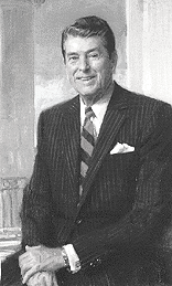 Al final de sus dos términos en el cargo, Ronald Reagan vio con satisfacción los logros de su programa innovador conocido como la revolución de Reagan, la cual alcanzó revigorizar a la gente americana y a reducir su necesidad sobre el gobierno. El sintió que había satisfecho su compromiso de campaña para el año 1980 de restablecer "El grande y confidente rugido del progreso americano, el crecimiento y el optimismo". En el 6 de febrero de 1911, Ronald Wilson Reagan nació de Nelle y John Reagan en Tampico, Illinois. El asistió a la Escuela Superior en el cercano Dixon y después trabajó a su manera a través de la Universidad de Eureka. Allí, él estudió economía y sociología, jugó en el equipo del Fútbol Americano, y actuó en obras de la escuela. Despues de la graduación, se convirtió en anunciador de deportes en la radio. Una prueba para la televisión en 1937, le ganó un contrato en Hollywood. Durante las dos próximas décadas, apareció en 53 películas. Tiene dos hijos, Maureen y Michael, de su primer matrimonio, con la actriz Jane Wyman. En 1952 se casó con Nancy Davis, también actriz; sus hijos son Patricia Ann y Ronald Prescott. Como Presidente del Gremio de Actores de la Pantalla, Reagan se envolvió en conflictos sobre el asunto del comunismo en la industria del cine; sus opiniones políticas cambiaron de liberal a conservador. Viajó el país como anfitrión principal de la televisión, convirtiendose un portavoz para el conservadurismo. En 1966 fué eligído Gobernador de California por un margen de un millón de votos; fué reelido en 1970. Ronald Reagan ganó la nominación Presidencial republicana en el año 1980 y eligió como su compañero de papeleta al ex-congresista de Texas y embajador de las Naciones Unidas George Bush. Los electores preocupados por la inflación y por el confinamiento que ya llegaba a un año, de los americanos en Irán, barrieron con la papeleta republicana hacia el cargo. Reagan ganó 489 votos electorales contra 49 para el Presidente Jimmy Carter. En enero 20 de 1981, Reagan asumió el cargo. A solamente 69 días más tarde, fue baleado por un casi asesino, pero se recuperó rápidamente y volvió a sus deberes. Su tolerancia e ingenio durante el peligroso incidente hicieron que su popularidad creciéra. Ocupándose hábilmente del Congreso, Reagan obtuvo legislación para estimular el desarrollo económico, contener la inflación, aumentar los empleos, y para consolidar la defensa nacional. Emprendió un curso de corte de impuestos y gastos del gobierno, rechazando desviarse de él cuando la consolidación de las fuerzas de defensa conducjeron a un gran déficit. Una renovación de la autoconfianza nacional para el 1984, ayudó a Reagan y a Bush a ganar un segundo término con un número sin precedentes de votos electorales. Su victoria voltéoa sus contendientes democráticos Walter F. Mondale y Geraldine Ferraro. En 1986 Reagan obtúvo un reacondicionamiento del código de Impuesto sobre Ingresos, el cual eliminó muchas deducciones y eximió a millones de personas de bajos ingresos. Al final de su administración, la nación gozaba de su período más largo registrado de prosperidad pacífica sin recesión o depresión. En la política externa, Reagan intentó alcanzar " paz mediante la fuerza". Durante sus dos términos aumentó los gastos para la defensa en un 35 por ciento, pero intentó mejorar las relaciones con la Unión Soviética. En reuniones dramáticas con el líder soviético Mikhail Gorbachev, negoció un tratado el cual eliminaría los misiles nucleares de alcance medio. Reagan le declaró la guerra al terrorismo internacional, enviando bombarderos americanos contra Libia después de que se evidenciara que Libia estuvo implicada en un ataque contra soldados americanos en un club nocturno de Berlín occidental. Al ordenar escoltas navales en el Golfo Persa, mantuvo el flujo libre de crudo de petróleo durante la guerra de Iran-Iraq. En armonía con la doctrina de Reagan, él le dio apoyo a las acciones anti-comunistas en America Central, Asia, y África. En resúmen, los años de Reagan en la Presidencia viéron la restauración de la prosperidad, y la meta de la paz por la fuerza parecía estar dentro de el cumplimiento. |