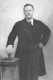 Con el asesinato de Presidente McKinley, Theodore Roosevelt, con apenas 43 años, se convirtió en el Presidente más joven de la historia de la nación. El trajo un nuevo entusiasmo y poder a la Presidencia, mientras vigorosamente dirigía al Congreso y al público americano hacia reformas progresivas y una política extranjera fuerte. Consideró el punto de vista de que el Presidente, como "administrador de la gente", debe tomar cualquier acción necesaria para el interés público a menos que expresamente sea prohibida por ley o por la Constitución. "No usurpé el poder", escribió, "sino que ensanché grandemente el uso del poder ejecutivo". La juventud de Roosevelt diferenció cortantemente de la de los Presidentes de cabaña. Nació en New York en 1858 dentro del seno de una familia rica, pero él también luchó --contra las enfermedades -- y en su triunfo se convirtió en un abogado de vida vigorosa. En 1884 su primera esposa, Alice Lee Roosevelt, y su madre murieron el mismo día. Roosevelt pasó mucho de los dos años próximos en su rancho en las Tierras Malas del territorio de Dakota. Allí dominó su dolor mientras vivió en las colinas, conduciendo los ganados, cazando grandemente --incluso capturó un foragído. En una visita a Londres, él se casó con Edith Carow en Diciembre de 1886. Durante la guerra Hispano-Americana, Roosevelt fué Teniente Coronel del Regimiento Rough Ryder, el cual dirigió en una rellerta en la batalla de San Juan. Fué uno de los héroes más visibles de la guerra. Boss Tom Platt, necesitando a un héroe llamar la atención lejos de los escándalos en el estado de Nueva York, aceptó a Roosevelt como candidato republicano a Gobernador en 1898. Roosevelt ganó y sirvió con distinción. Como Presidente, Roosevelt sostuvo el ideal que el gobierno debe ser el gran árbitro de las fuerzas económicas conflictivas de la nación, especialmente entre capital y de trabajo, garantizando la justicia a cada uno y sin dispensar favores a ningunos. Roosevelt emergió espectacularmente como "caza confianza" forzando la disolución de la gran combinación del ferrocarril en el noroeste. Otros asuntos anticompetitivos bajo el Acta de Sherman siguieron. Roosevelt dirigió los Estados Unidos más activamente en política mundial. El gustaba de frasear un proverbio favorito, "hable suavemente y carge una vara grande". Enterado de la necesidad estratégica de un atajo entre el el Atlántico y el Pacífico, Roosevelt aseguró la construcción del Canal de Panamá. Su corolario a la Doctrina de Monroe previno el establecimiento de bases extranjeras en el Caribe y derrogó el derecho terrenal de la intervención en América Latina de los Estados Unidos.